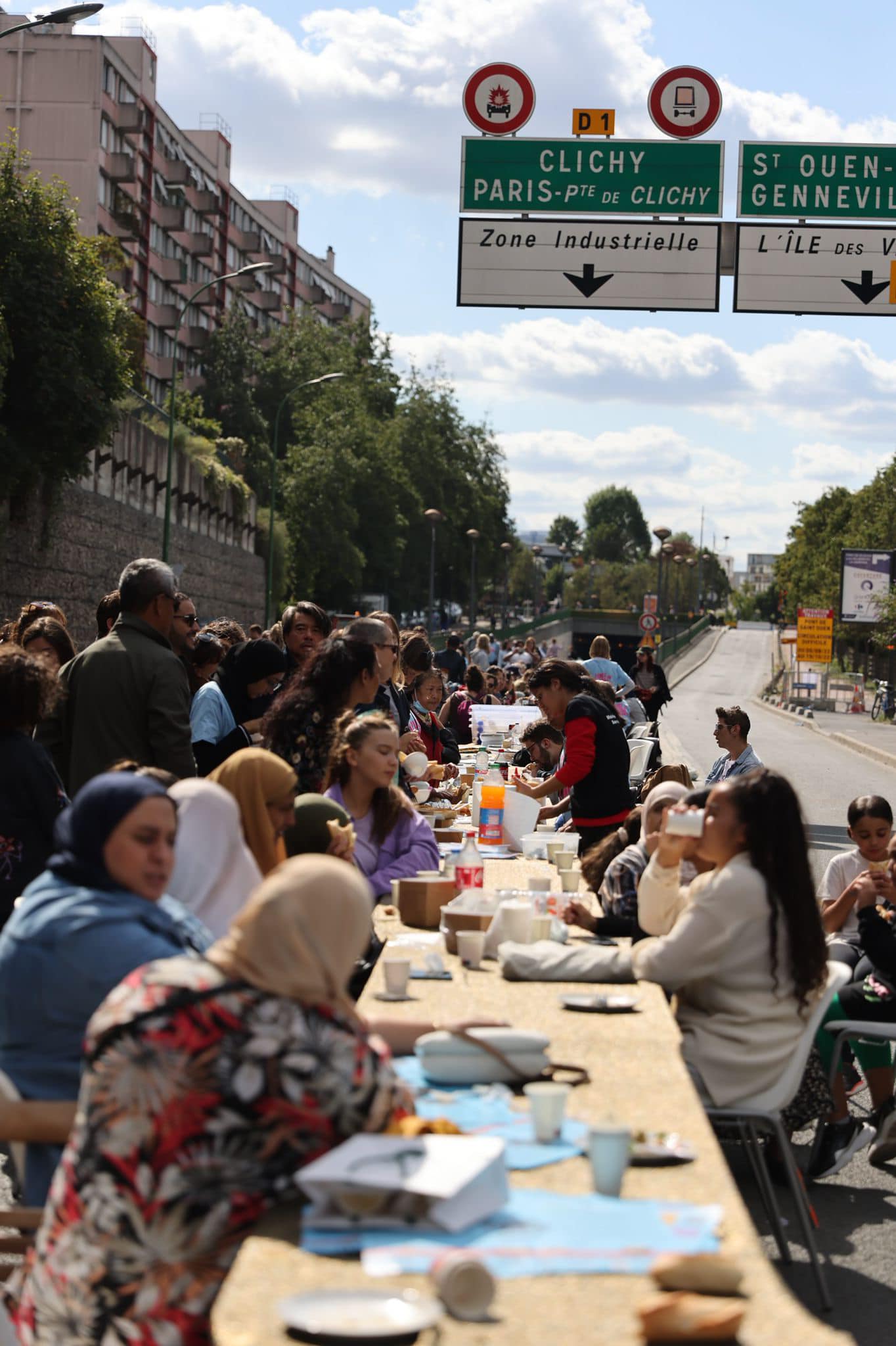 Images du 18 septembre 2022, la table de 2.56 kilomètres installée sur les quais de Seine, entre Saint-Ouen et Saint-Denis