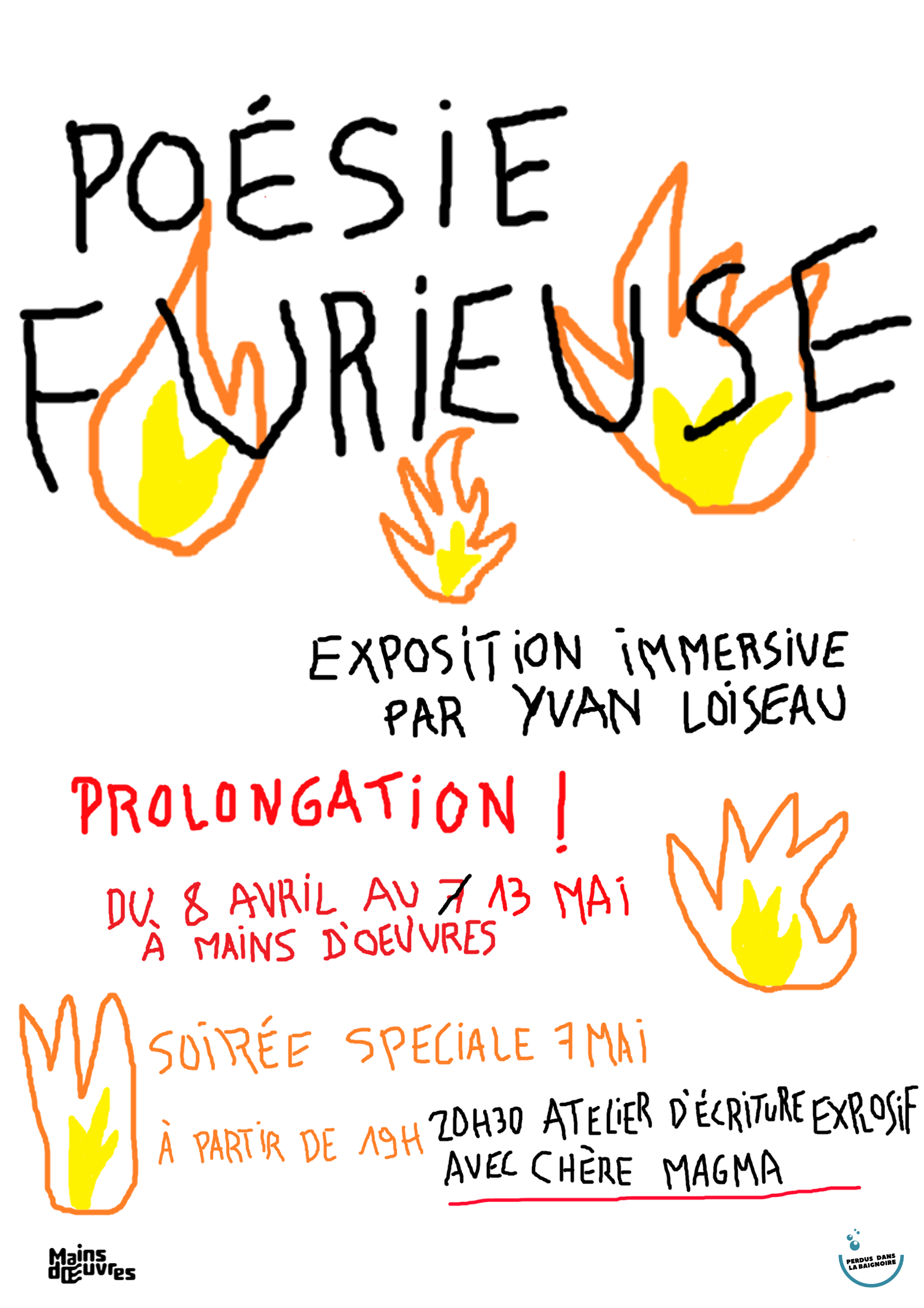Poésie Furieuse est une exposition immersive. Les visiteurs vont être plongés dans une manifestation poétique de grande ampleur, avec des poèmes qui vont faire jusqu’à 8 mètres de long, que j’ai écrits puis peints. Promis, les lacrymos ne piquent pas.